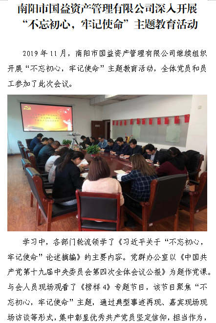 南陽市國益資產管理有限公司深入開展“不忘初心,牢記使命”主題教育活動
